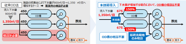 [2] 低動力で前処理を実施:従来OD法と比較して除去BOD当りの消費電力が少ない